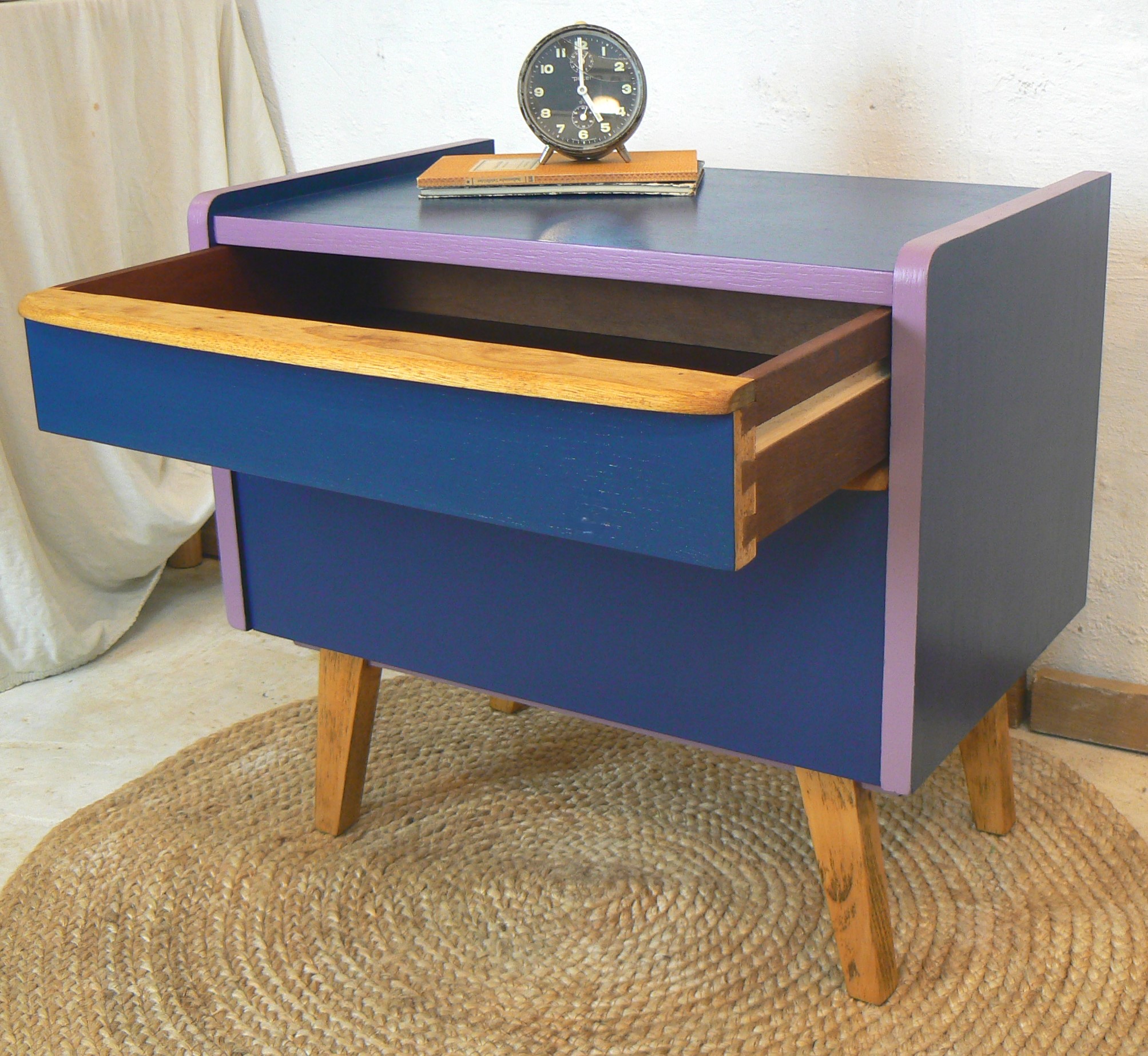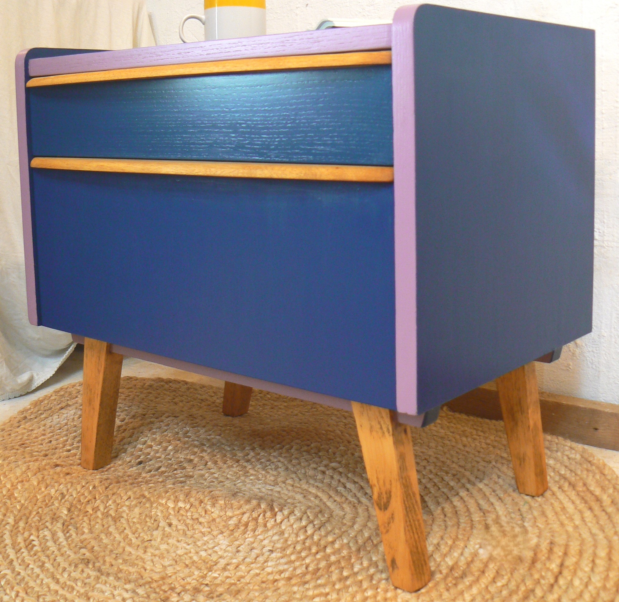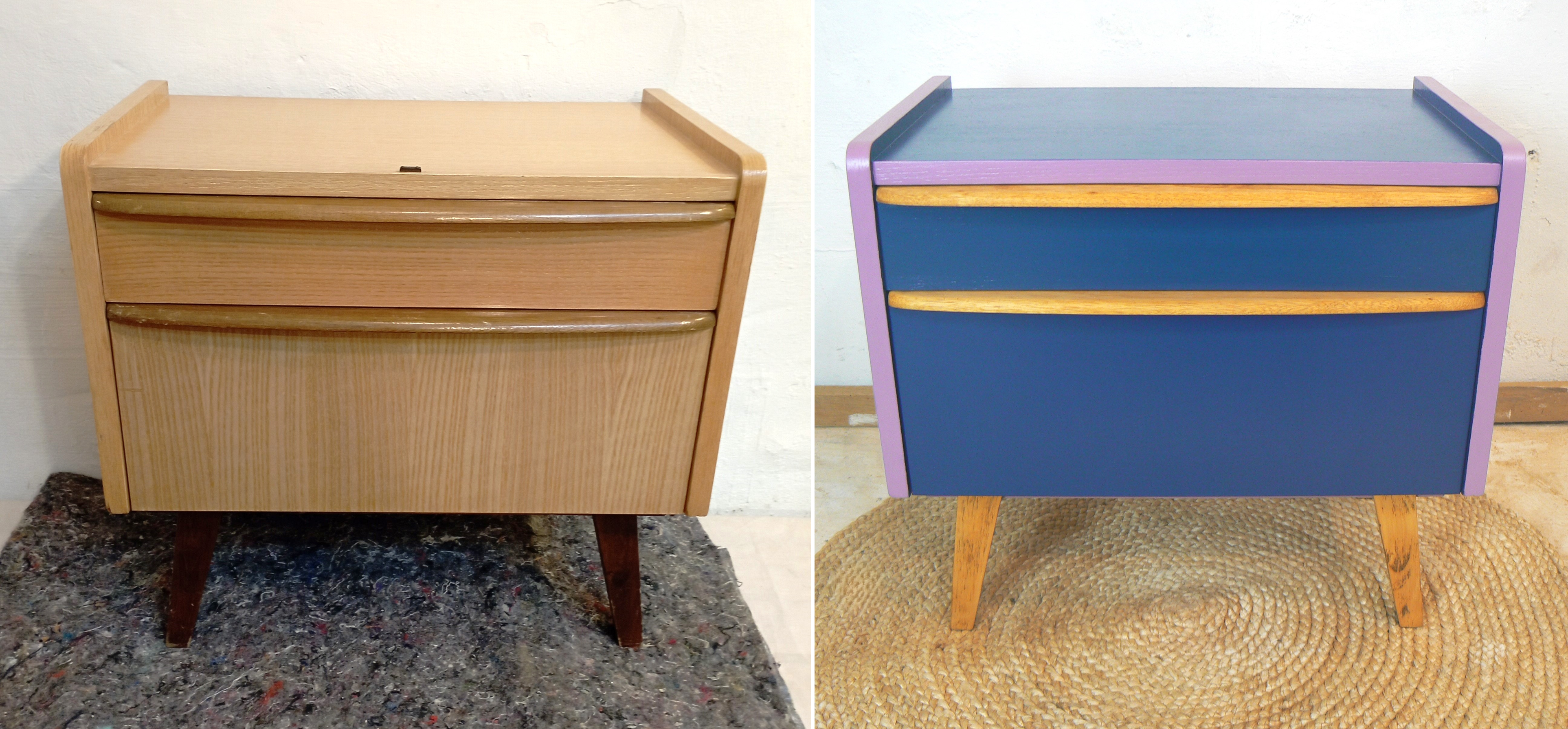 …la chapa ha sido pintada en azul marino (frente y lados) y lila (detalles)