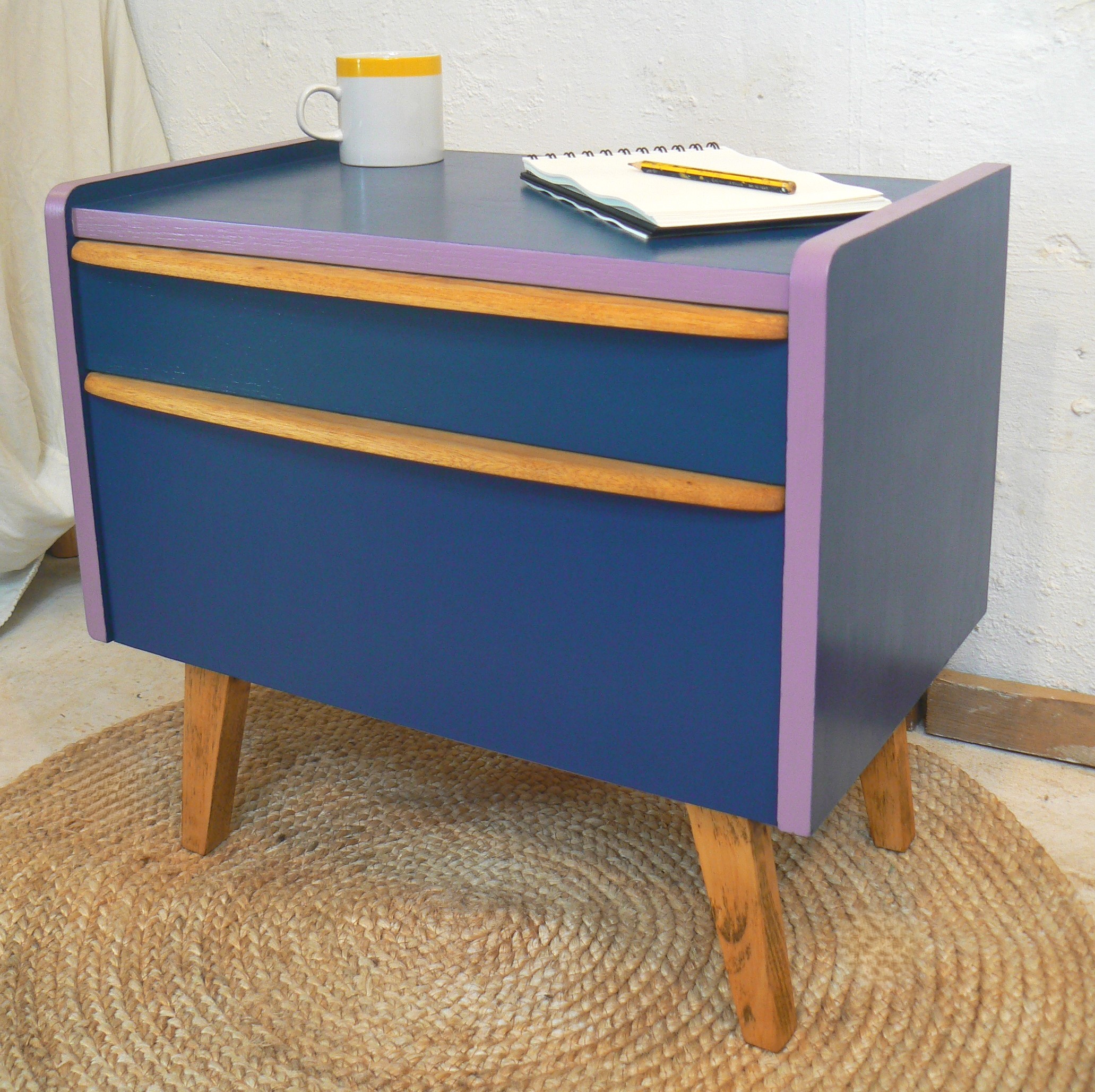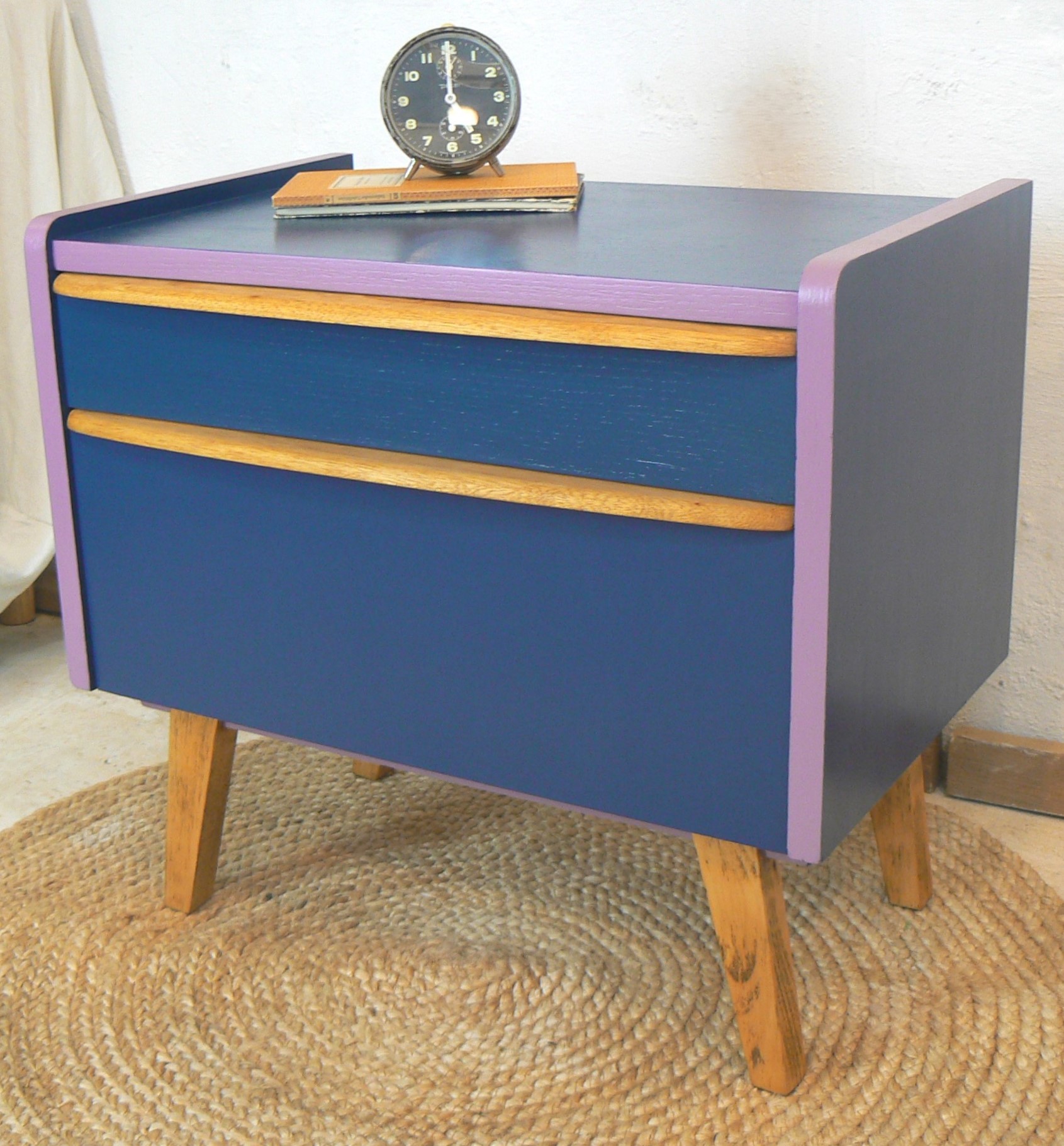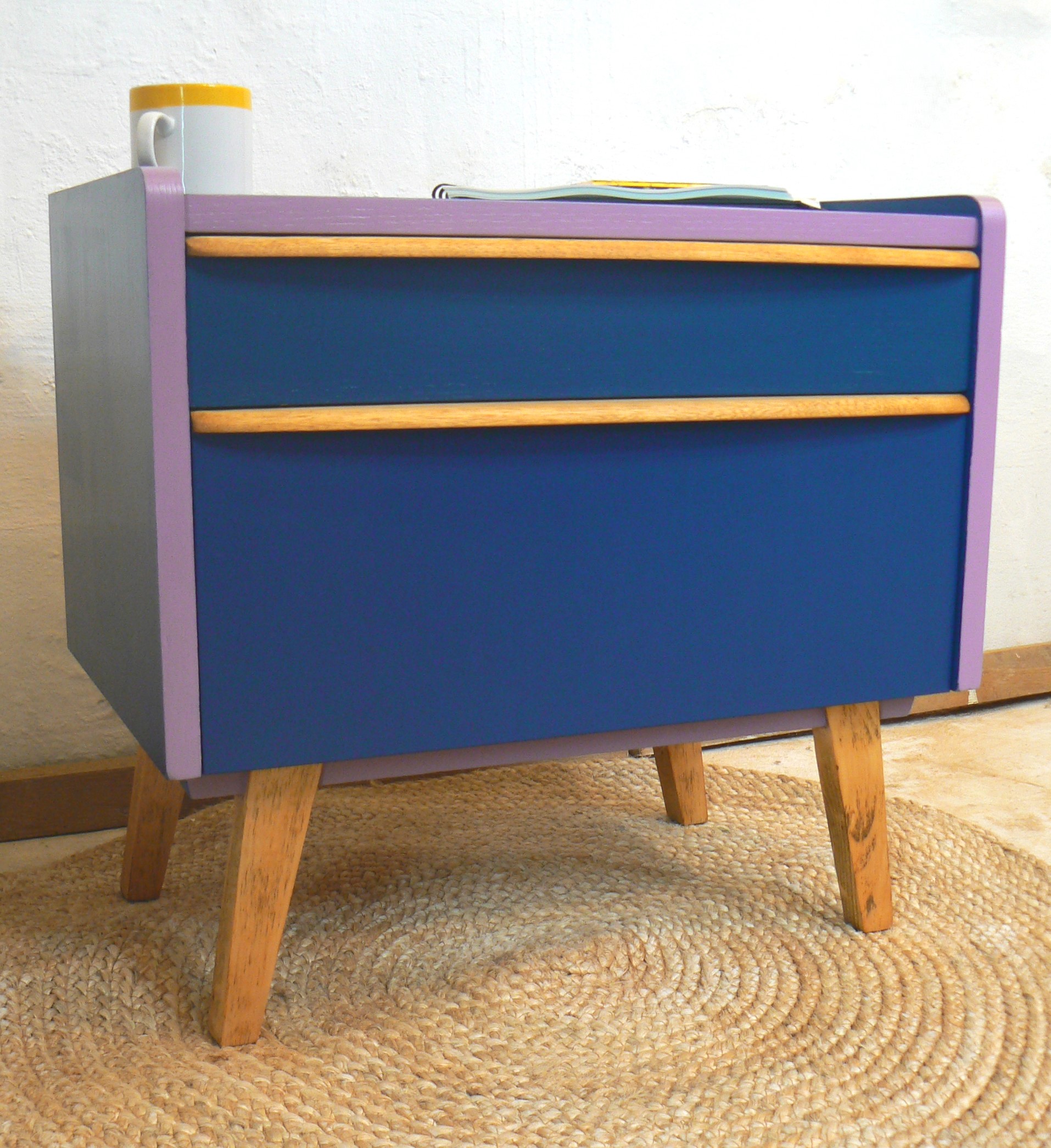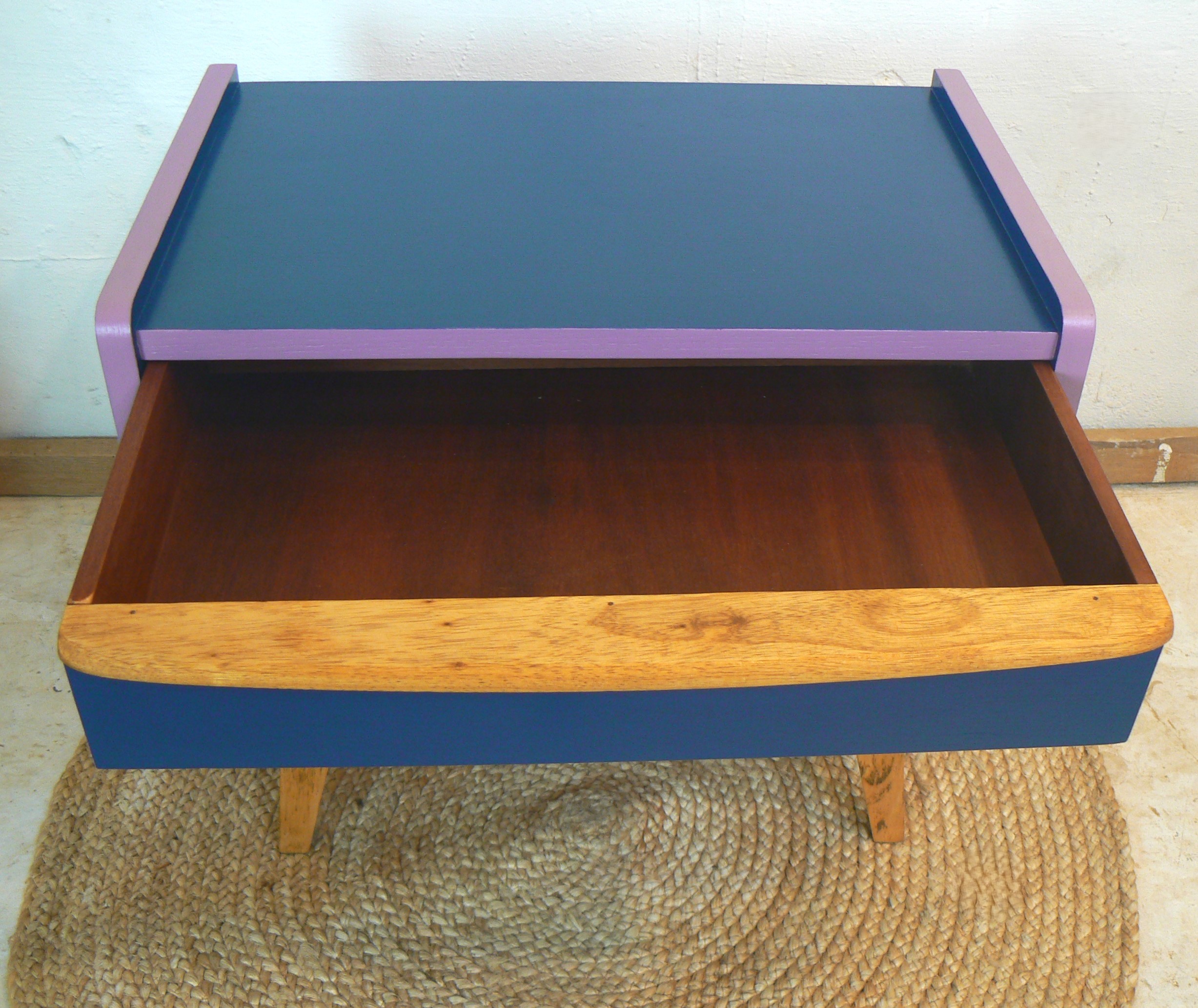 …la chapa ha sido pintada en azul marino (frente y lados) y lila (detalles)